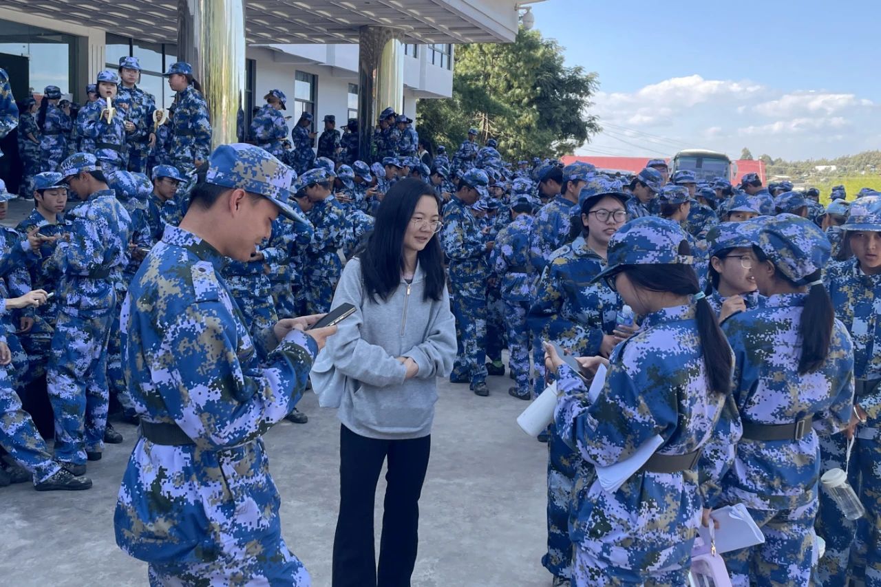 活动当天,太阳成tyc122cc的老师们,来到2024级员工军训基地。在这里,老师们首先看望了正在进行军训的2024级新生,关切地询问了他们的军训生活、身体状况以及遇到的困难和问题,并鼓励他们要克服困难,珍惜军训机会,锤炼意志品质,为未来的学习生活打下坚实的基础。