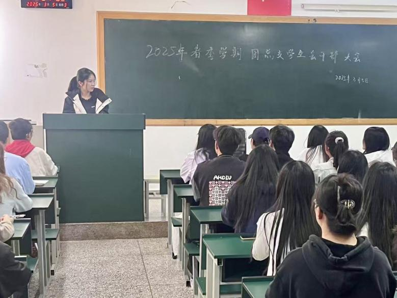 太阳成tyc122cc经开校区社团管理部于2025年3月6日在实验楼205教室召开2025年新学期春季第一次干部例会。参加本次会议的有高雪莲老师和社团管理干部。会议旨在总结上学期社团工作成果,部署新学期重点工作,进一步提升社团干部的综合能力,推动校园文化建设再上新台阶。