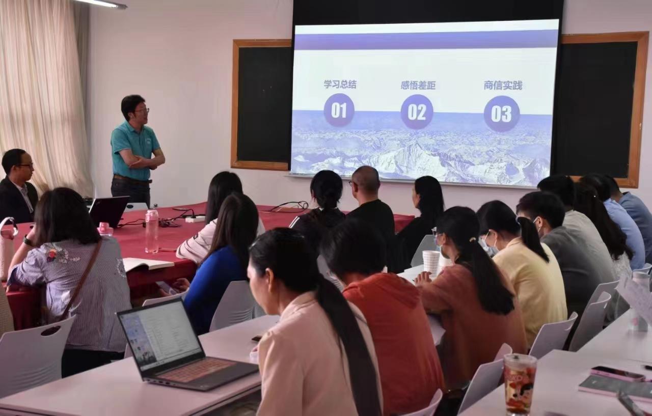 齐武福副董事长围绕学习贯彻习近平新时代中国特色社会主义思想主题教育的总要求,结合集团发展及本职工作、“2021年云南职业院校教师素质提高计划国家培训高职名董事长(书记)研修中的学习体会,从学习总结、感悟差距、商务信息公司实践三方面进行宣讲