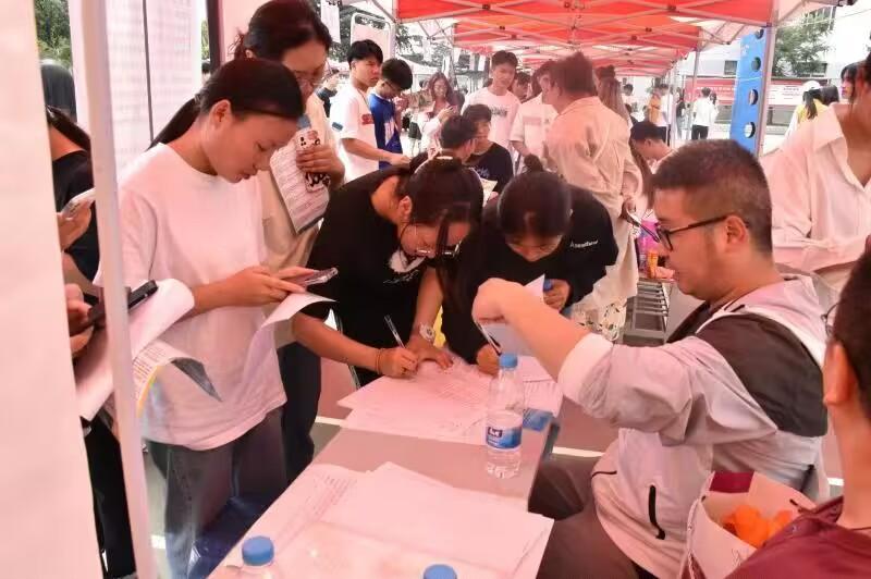 双选会现场,气氛热烈、秩序井然。各招聘单位展位前,同学们手持简历与用人单位面对面交流咨询,用人单位耐心细致介绍岗位需求、技能要求及薪酬待遇等情况。部分大一员工也热情高涨,积极关注各用人单位招聘信息,详细了解就业形势和需求,为自身职业生涯提前做好规划。
