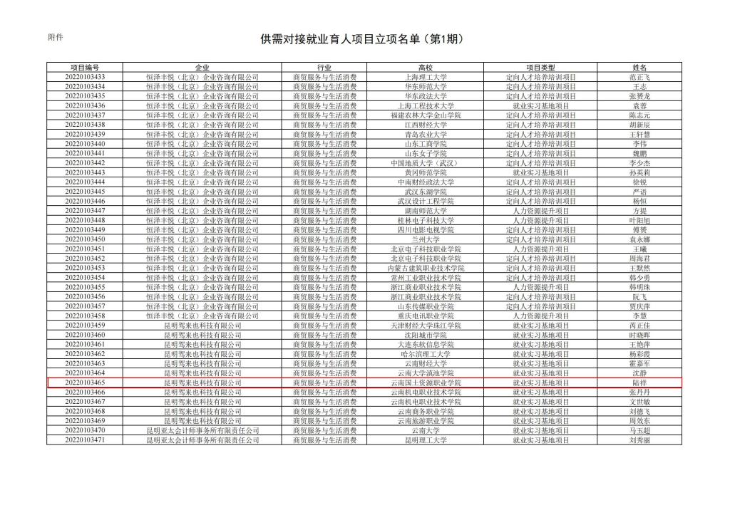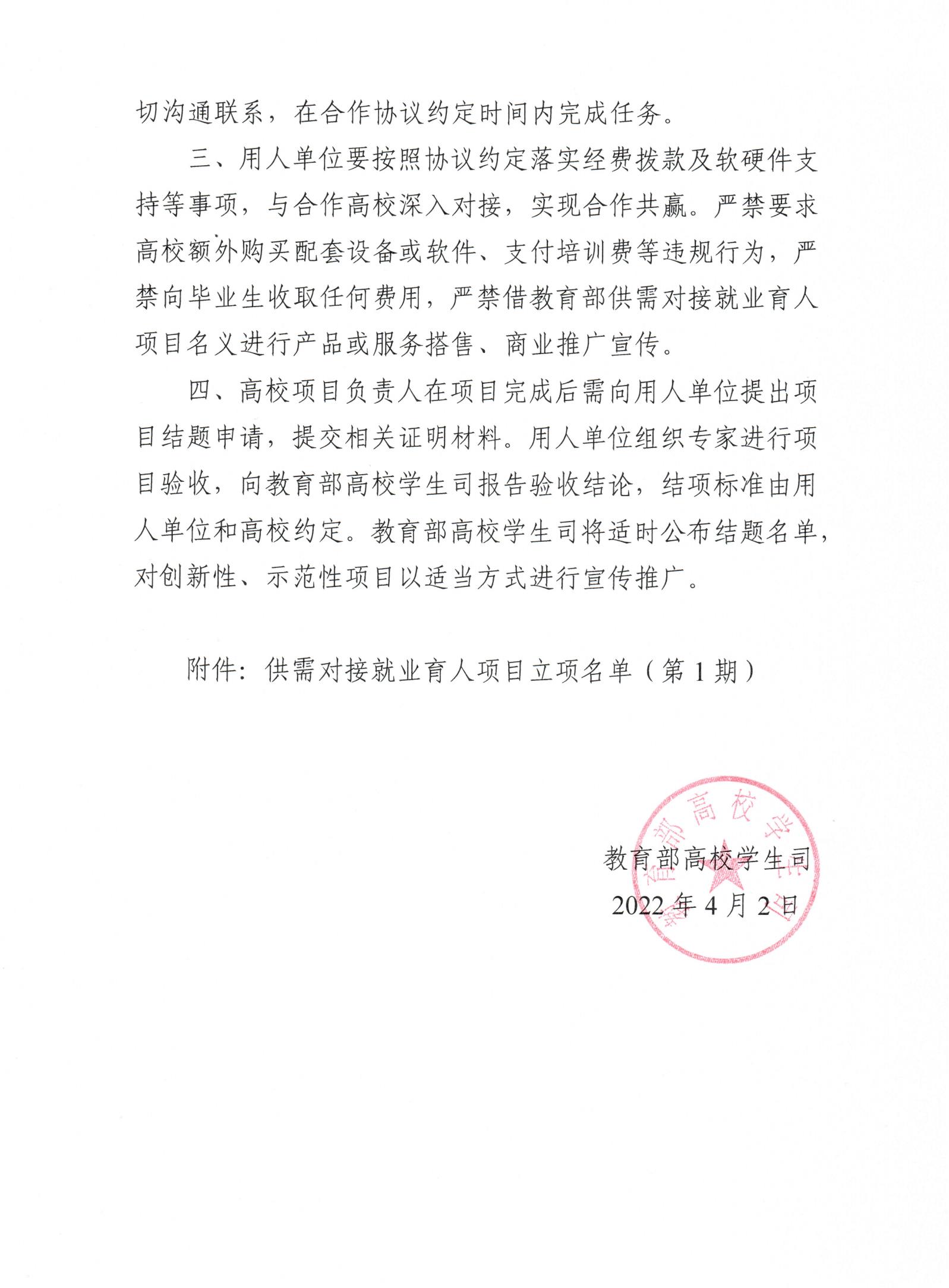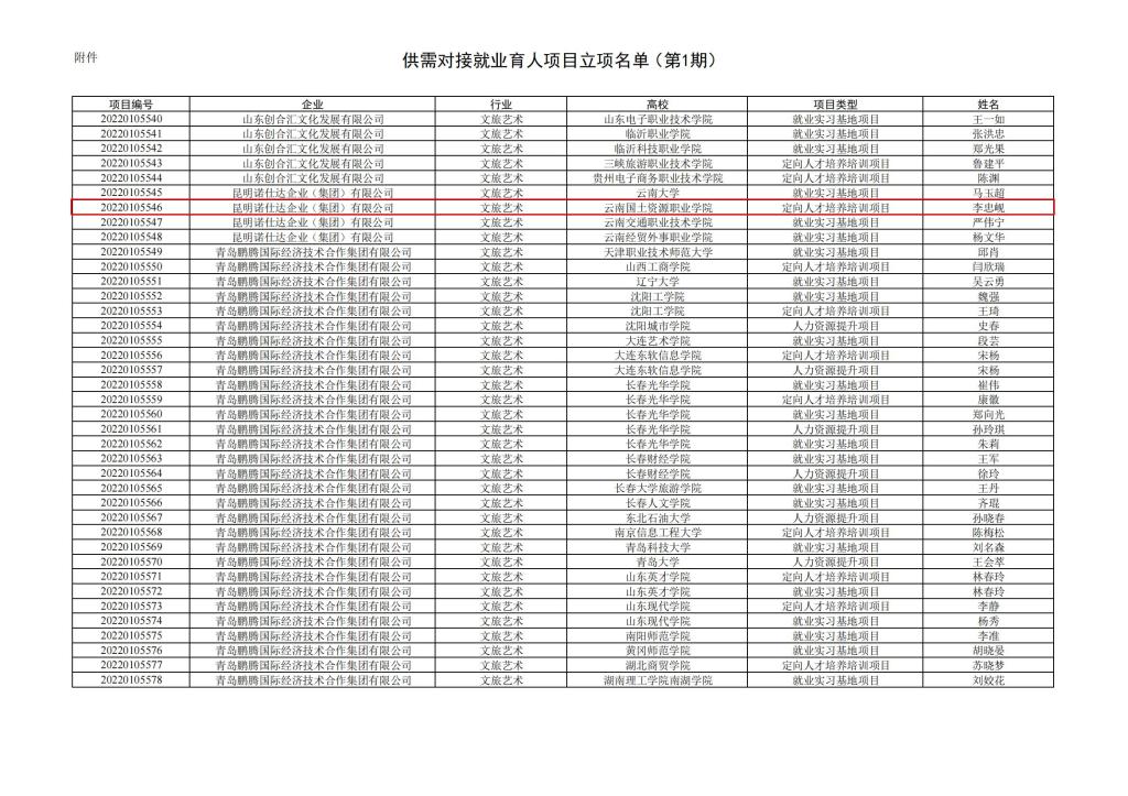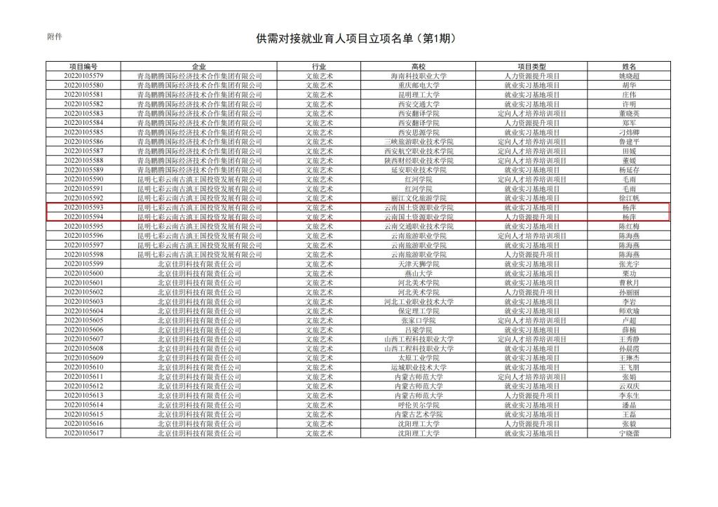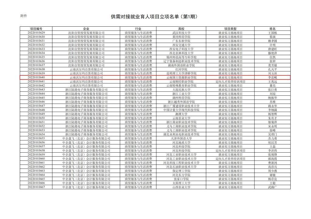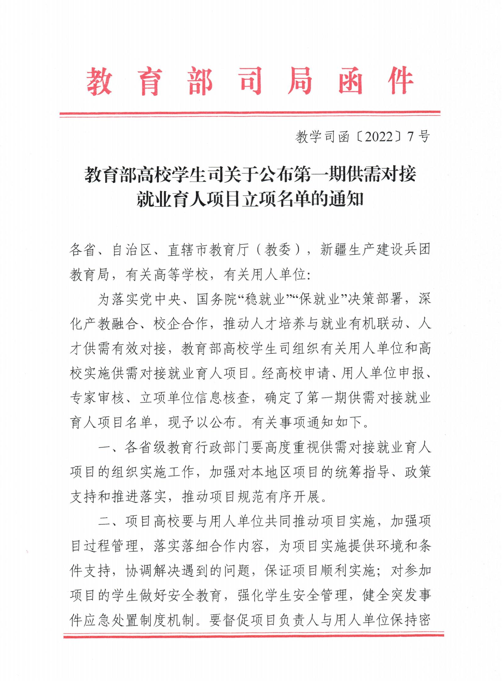 教学司函〔2022〕7号 教育部高校员工司关于公布第一期供需对接就业育人项目立项名单的通知-云南国土