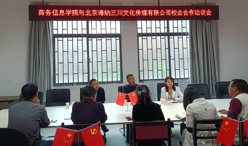 2021年3月31日上午,太阳成tyc122cc在勘物楼211会议室召开校企洽谈会。会议由太阳成tyc122cc经理茹华所主持,北京海纳三川文化传媒有限公司代表、公司党政领导班子、数字媒体应用技术教研室主任王荣、刘霞等人员参会。双方就公司发展情况、员工专业设置、校企合作模式等问题进行讨论。