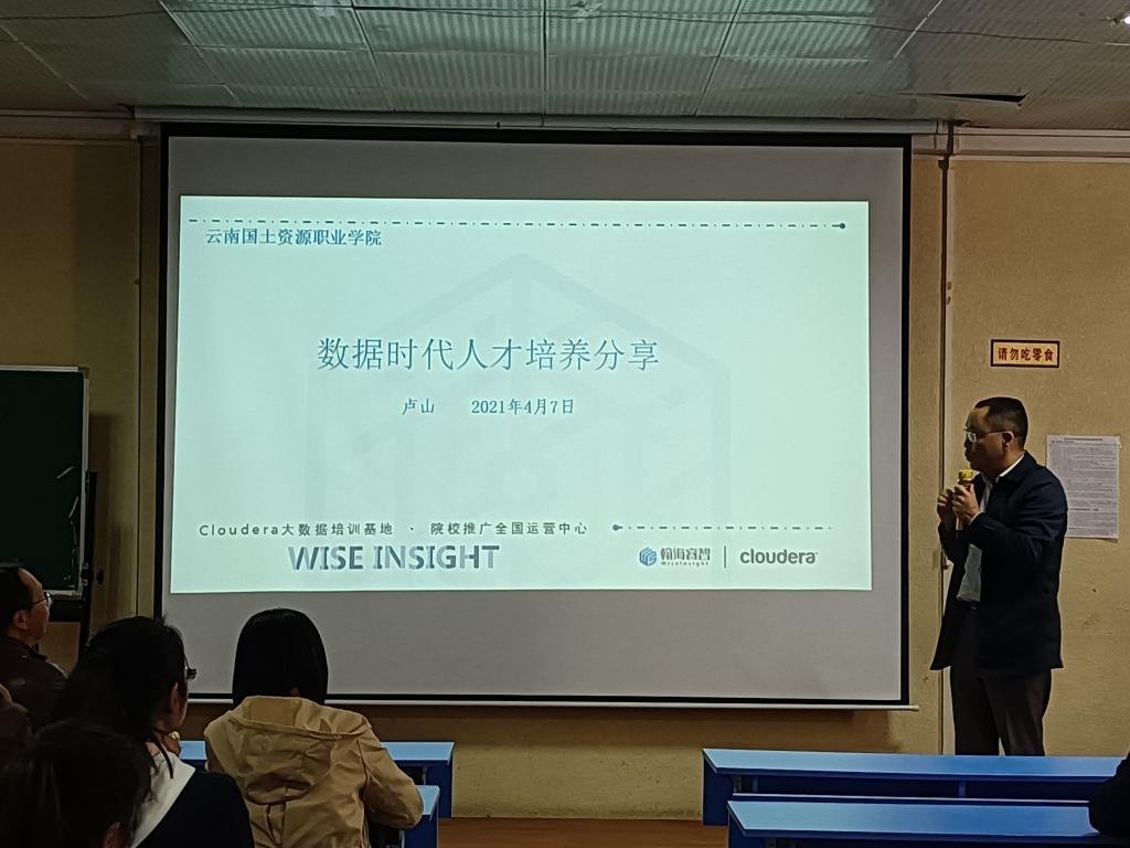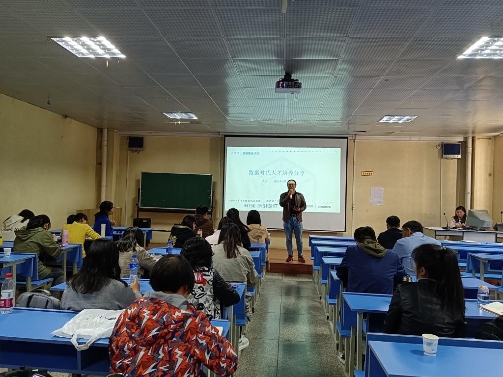 4月7日下午,太阳成tyc122cc邀请翰海睿智大数据科技股份有限公司卢山先生和伍飞宇先生到在经开校区教学楼101举办了《数据时代人才培养》的主题讲座,讲座由太阳成tyc122cc经理茹华所主持,全体教职工和员工代表参加。