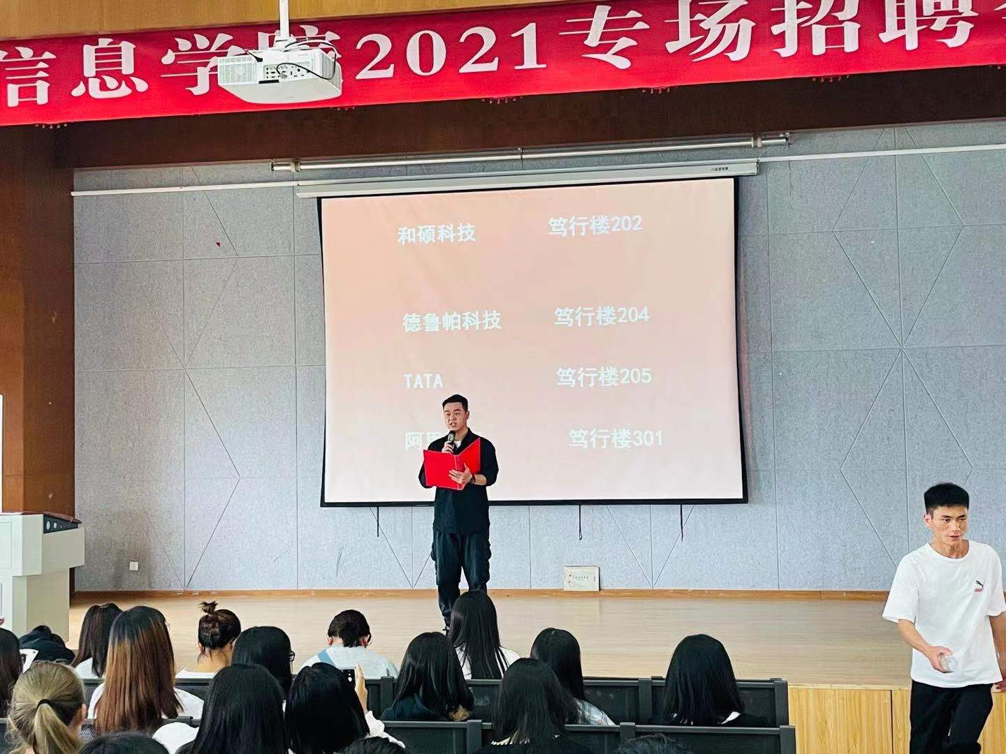 为了给毕业生们提供更好的就业机会,太阳成tyc122cc于2021年6月23日下午13点在阳宗校区红山讲堂开展党旗在基层高高飘扬-招聘宣讲活动。刘思文老师到会,和硕科技、 德鲁帕数码科技,TA TA集团,阿里巴巴-云南渠道商敏学科技到会宣讲。