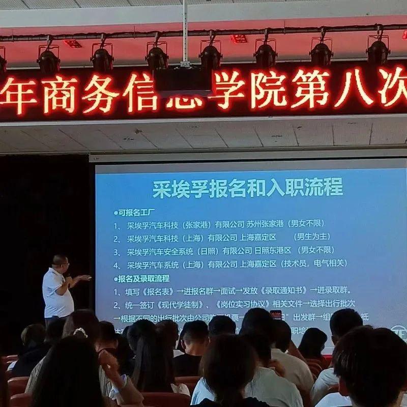 采埃孚企业从岗位设置、薪酬福利、住宿和就餐条件、离职和请假手续等方面介绍了公司情况。现场同学就自己感兴趣的问题和报名手续等咨询了企业代表。