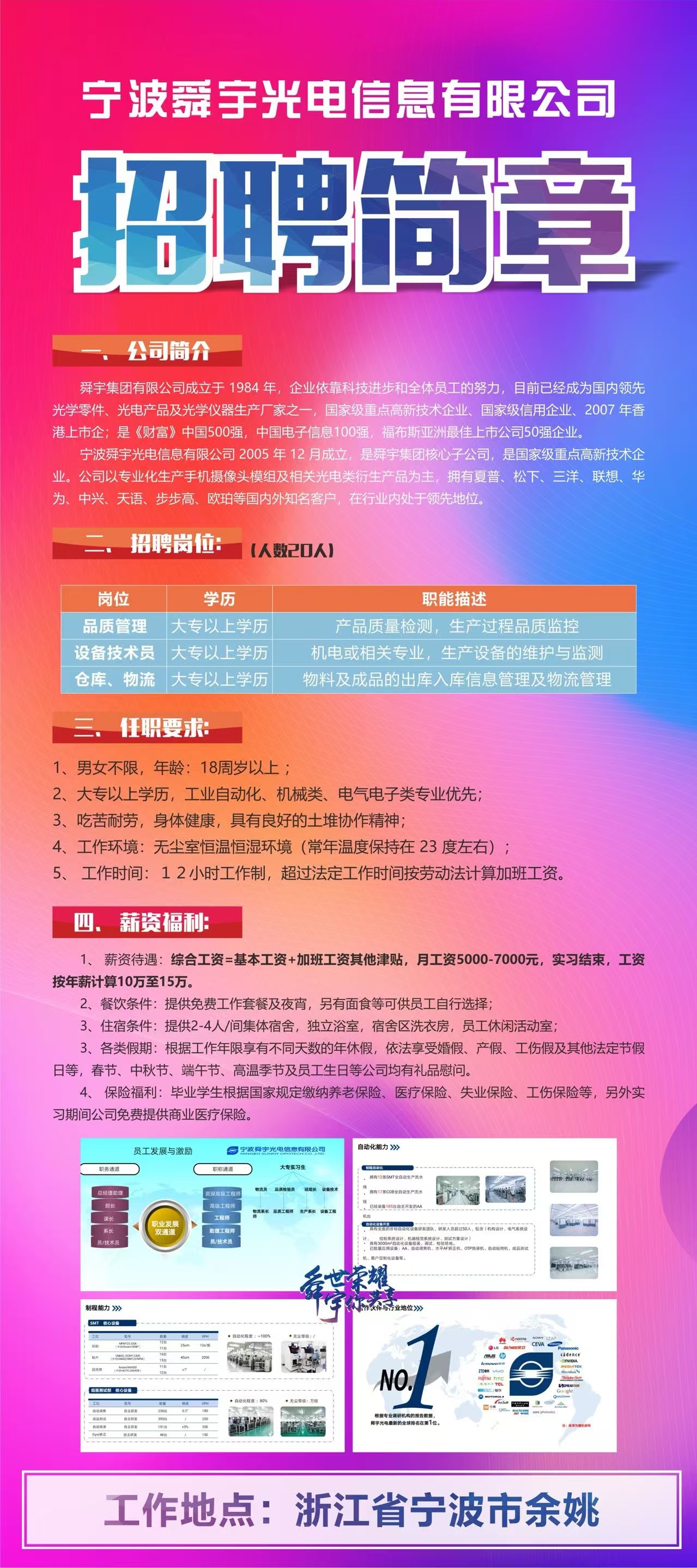 【招聘信息】2025—09 宁波舜宇光电信息有限公司