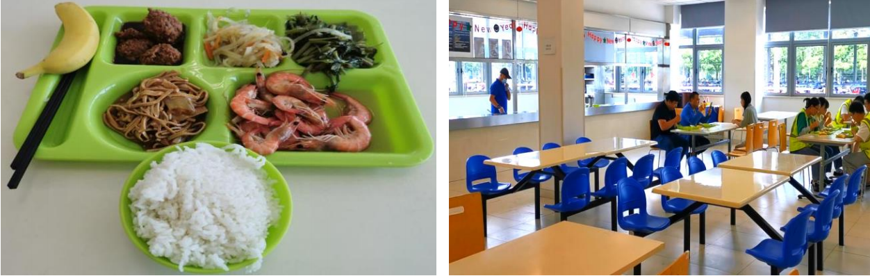 餐饮:免费提供,每天两顿,15元/顿标准,菜品含两荤一小荤两素菜,每顿有酸奶及水果供应