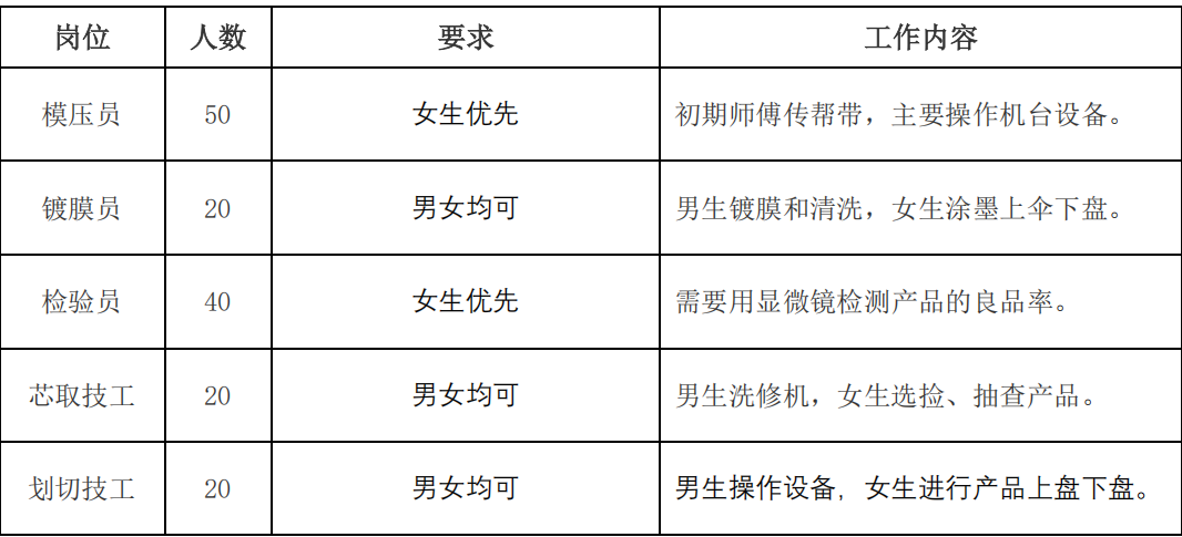 ⑩ 录取流程:面试流程简单,面试前需要仔细阅读蓝特光学的所有招聘内容,如薪酬结构、工作环境、宿舍、食堂、福利、交通出行,全部了解以后并经过父母同意填写电子报名表,未填写电子报名表的同学不予面试。蓝特面谈不需要简历。