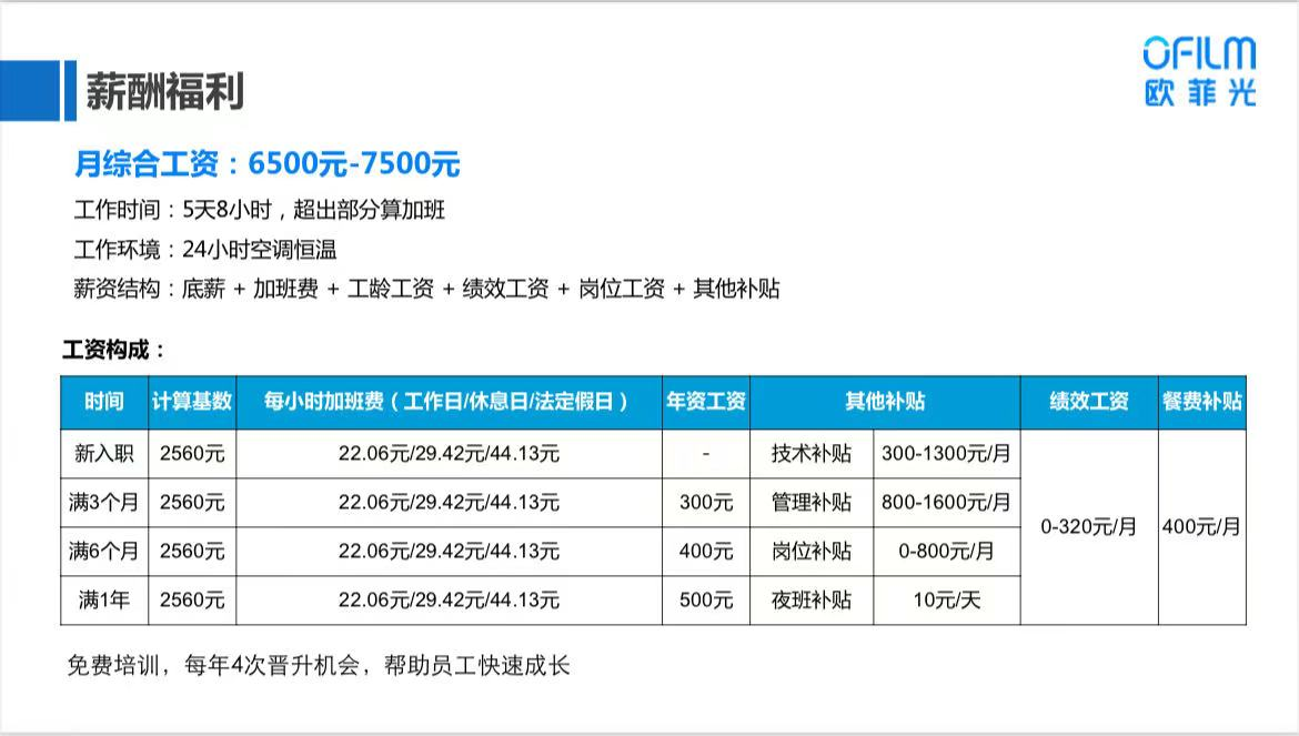 (1) 综合薪资:5500–7500元/月(税前);月休3-4天、每月15号发薪;