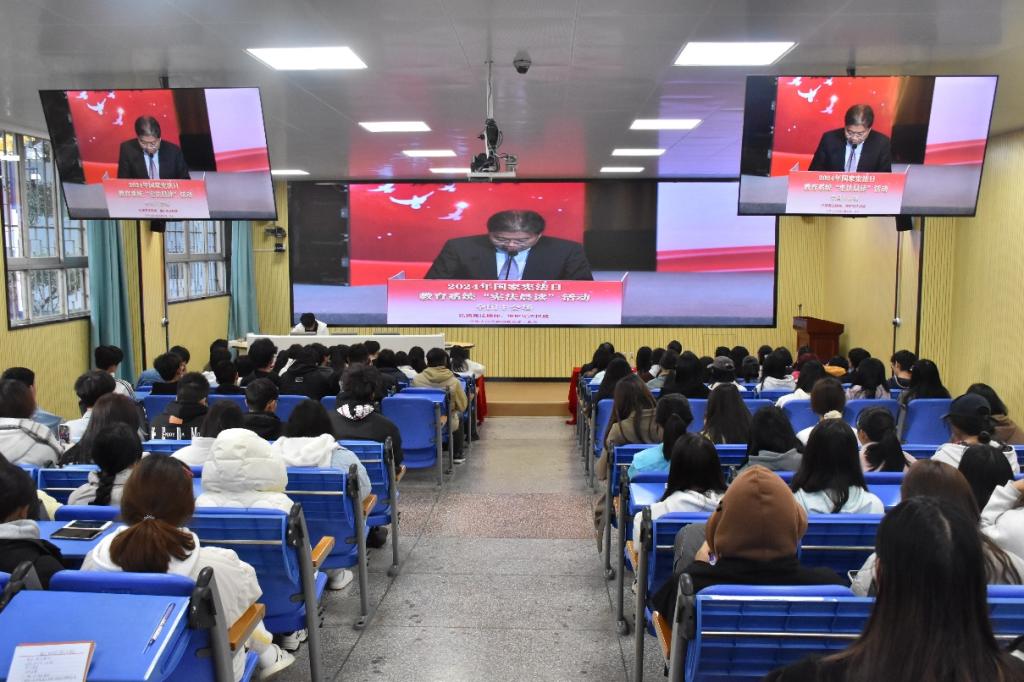 活动中,师生们通过教育部全国青少年普法网收看了北京主会场的全国大中小员工 “宪法晨读” 活动网络直播。在庄严的国歌声中,师生们起立肃穆,齐唱国歌,目视主会场五星红旗缓缓升起。随着直播中宪法条文的诵读声响起,现场师生也同步跟读,声音洪亮而坚定,在智慧教室内回荡。大家全神贯注,认真聆听,感受着宪法的庄严与权威。