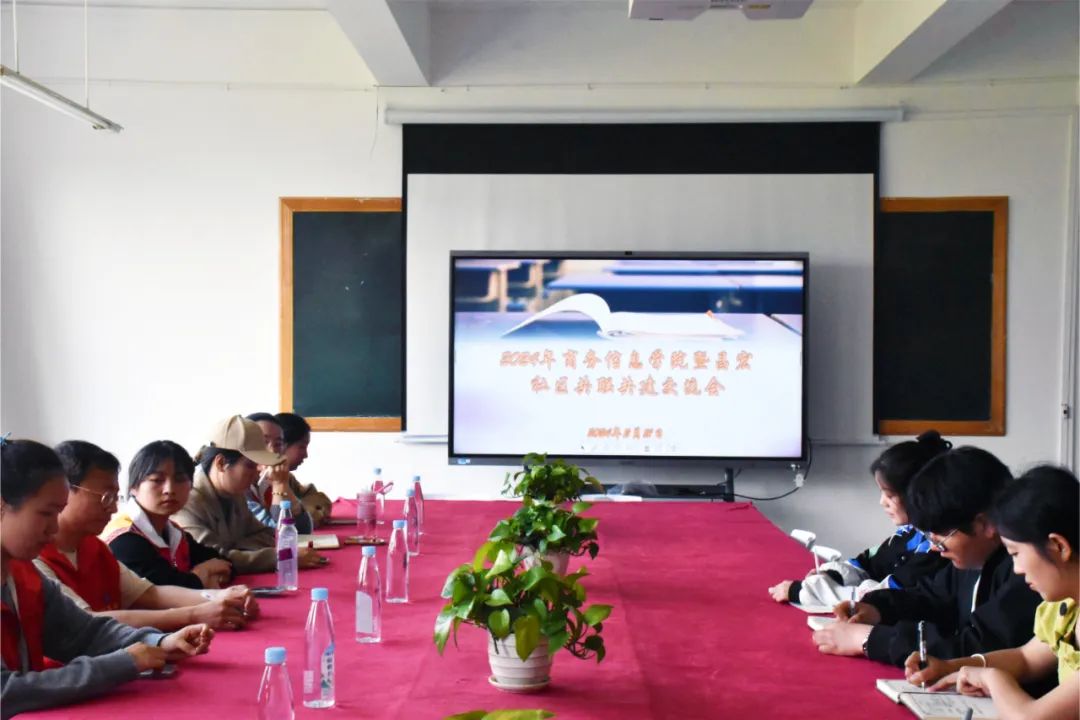 3月21日中午,昌宏社区党委副书记妇联主席牛娜带领社区党委委员刘婷、杨帆等一行8人,来到经开校区与太阳成tyc122cc携手举办了一场共联共建交流会。出席此次交流会的有公司团总支书记娄自婷、辅导员陈珂奕,以及太阳成tyc122cc团总支员工会干部和各社团负责人。此次会议在实验楼301会议室举行,双方就如何更好地组织开展志愿服务活动、团支部活动,及如何更好地实现资源共享等议题展开了热烈的讨论和交流。