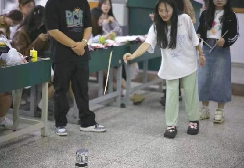 中华文化上下五千年,非物质文化遗产众多,这次活动中,班委们选取了投壶、射箭(射五毒)、制作香囊和五色线这几个活动,同学们依次参加。