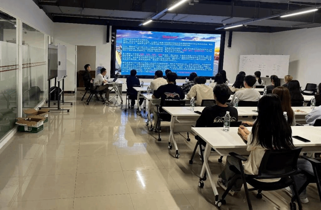 接着,萤火出海公司云南负责人陈坤为大家作介绍。萤火出海公司专注于跨境电商领域,对行业有着深刻的洞察和丰富的经验。陈总为大家分享了云南在跨境电商领域的独特优势,包括地理位置、政策支持、市场潜力等方面。他还特别强调了企业在人才需求方面的具体要求,为员工们指明了学习和努力的方向,为有意向加入跨境电商行业的员工们提供了宝贵的机会。活动过程中,员工们踊跃提问,企业老师耐心解答,现场气氛热烈,学术与实践的碰撞激发出许多创新的火花。