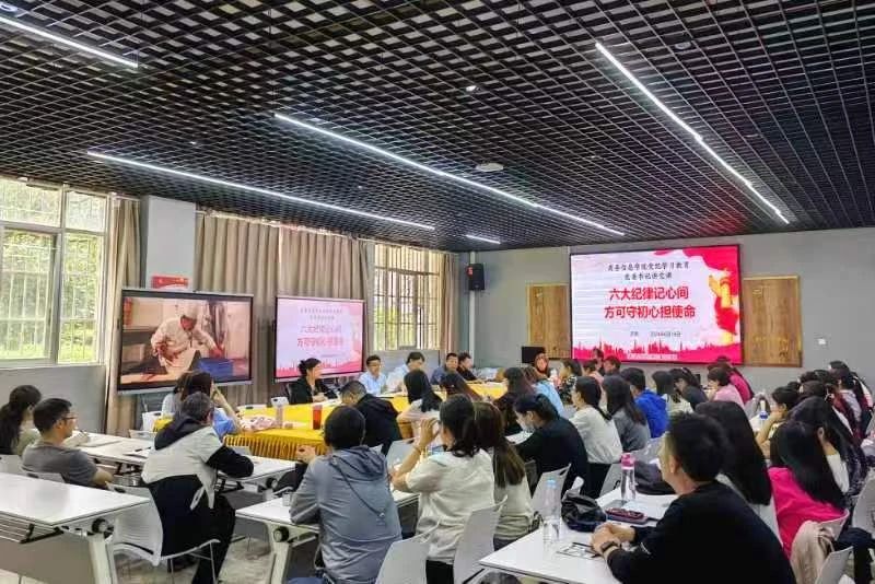 方老师由“没有规矩,不成方圆,懂规矩才有定力,守规矩才不乱方寸。守纪律、讲规矩,说易行难。自觉做到遵规守纪,需要极大地意志力来保证”引出党课主题。她从党纪学习教育的重要性入手,强调开展党纪学习教育,是加强党的纪律建设、推动全面从严治党向纵深发展的重要举措。方老师重点讲解了党的“六大纪律”,即政治纪律、组织纪律、廉洁纪律、群众纪律、工作纪律和生活纪律,并结合公司的实际情况和教职工的工作特点,详细分析了每一项纪律的内涵和要求,使广大教职工对党的纪律有了更加清晰和深刻的认识。