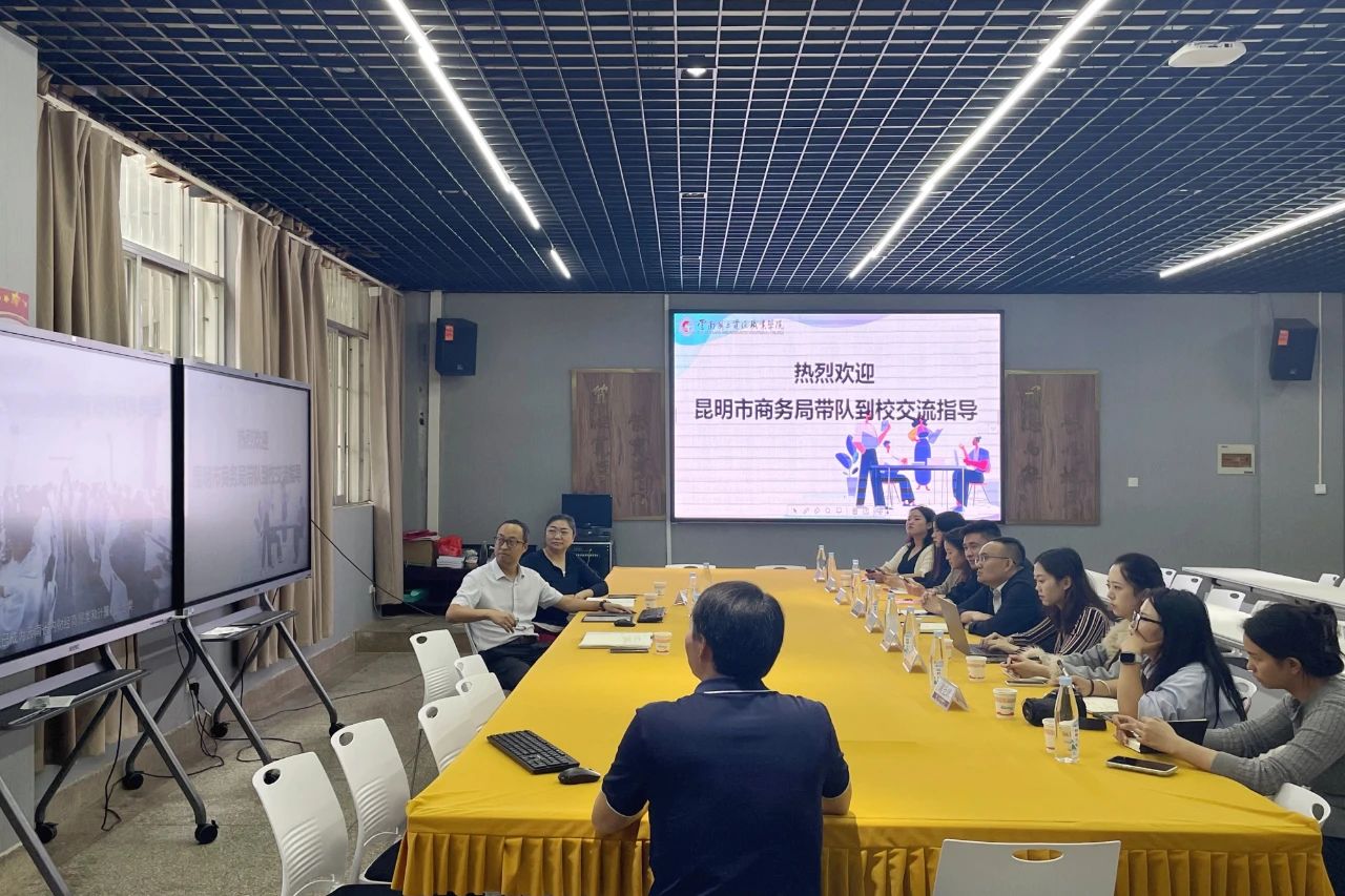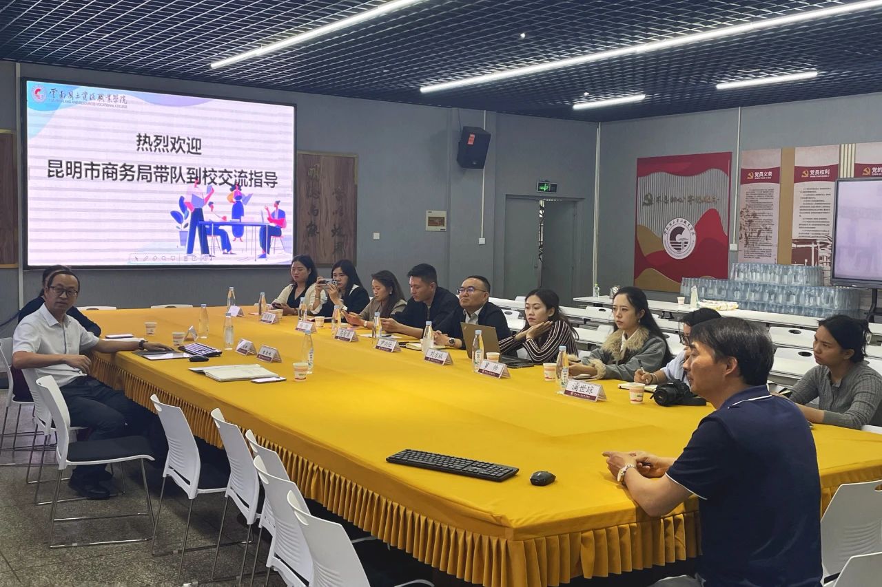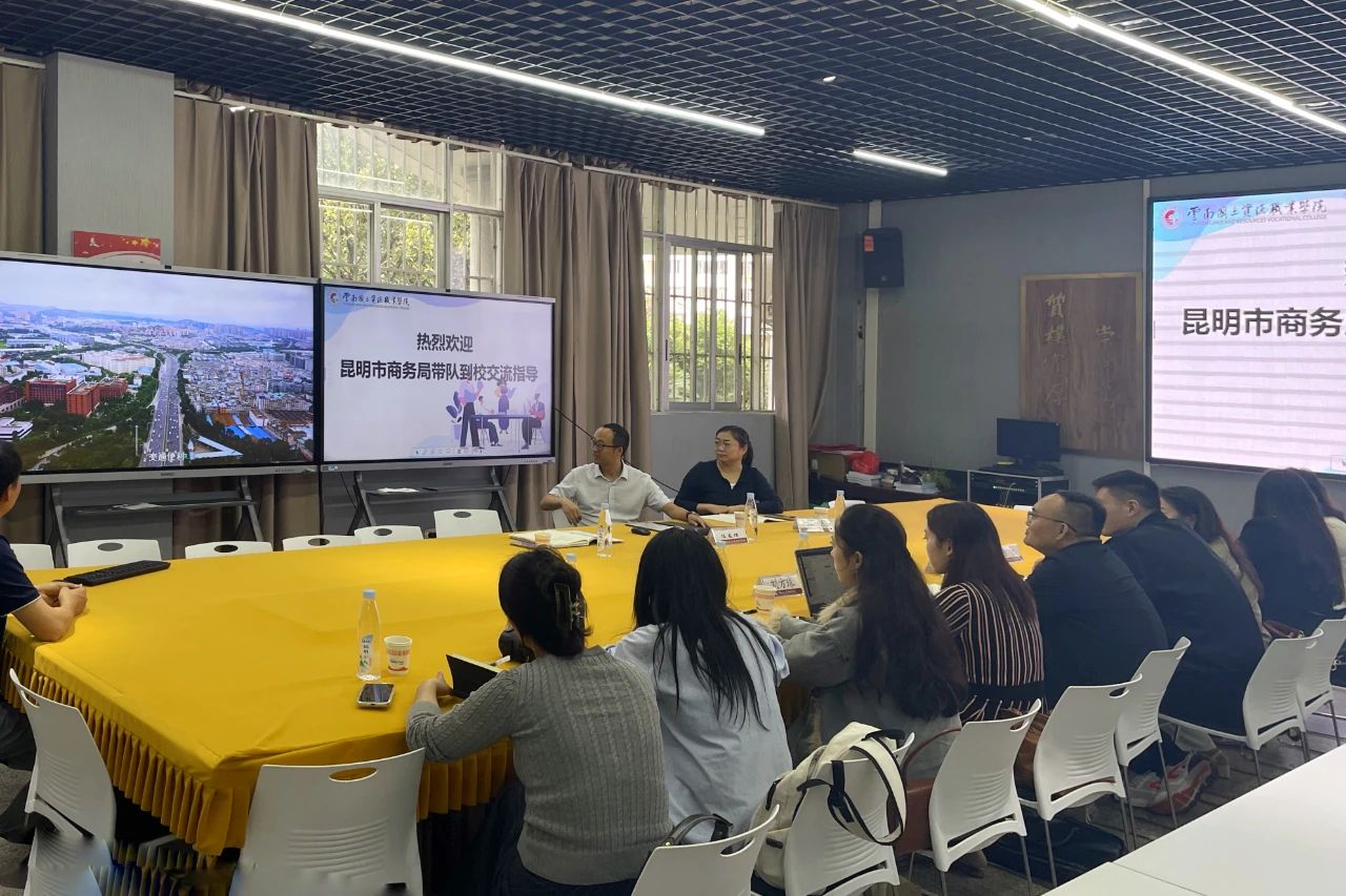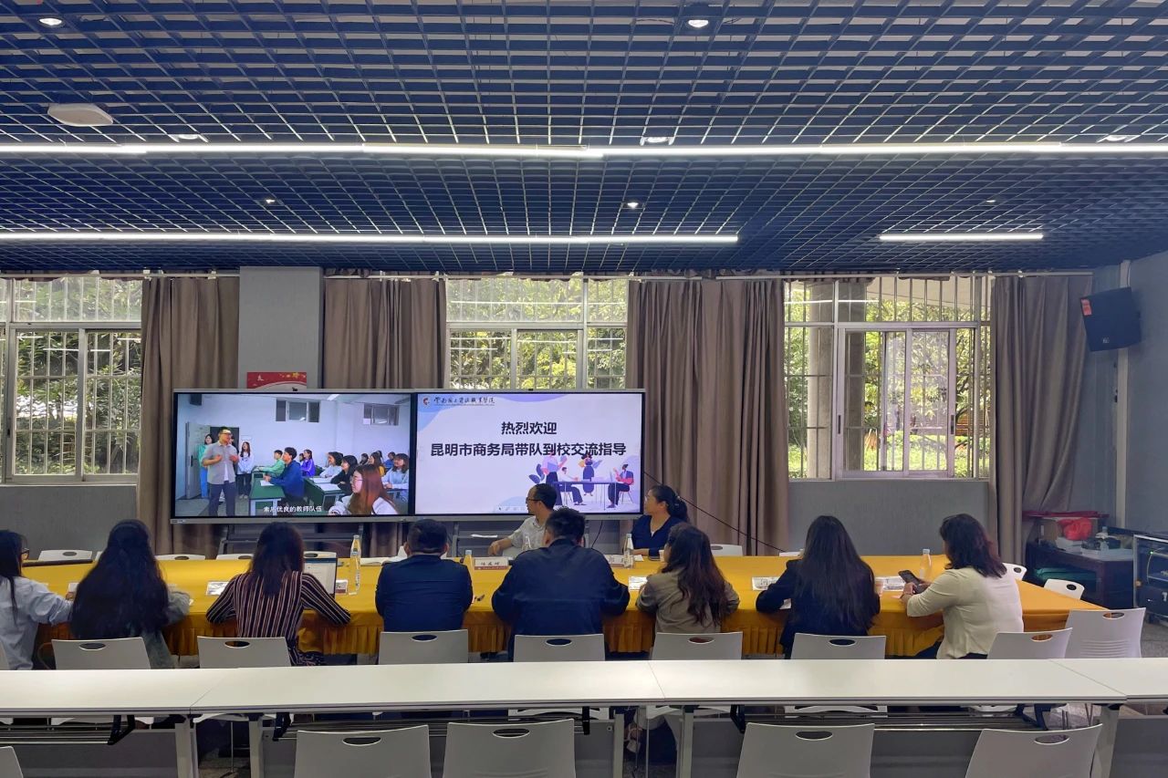 为全面推进电商人才培养工作,建立特色电商人才培训体系,健全电商“政校行企”联动培养机制,9月25日上午,由昆明市商务局牵头,昆明市跨境电子商务协会、云南云品出滇科技有限公司、昆明飞蓬跨境电子商务有限公司、云南星火源传媒科技有限公司、雨果跨境(昆明)品牌管理有限公司领导一行到太阳成tyc122cc调研指导。太阳成tyc122cc任友理经理,李忠岘、郭欣副经理参加调研座谈会。