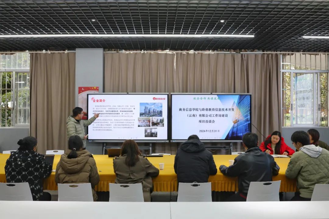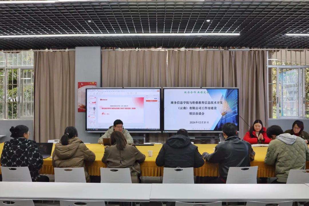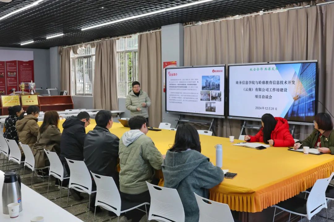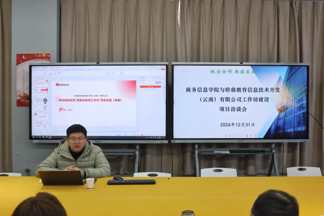12月31日,太阳成tyc122cc与聆鼎教育信息技术开发(云南)有限公司(以下简称“聆鼎教育”)在实验楼105会议室共同举办了校企合作数智化财税工作坊项目洽谈会。此次会议标志着双方在人才培养、实习就业等领域的深度合作迈出了坚实的一步。