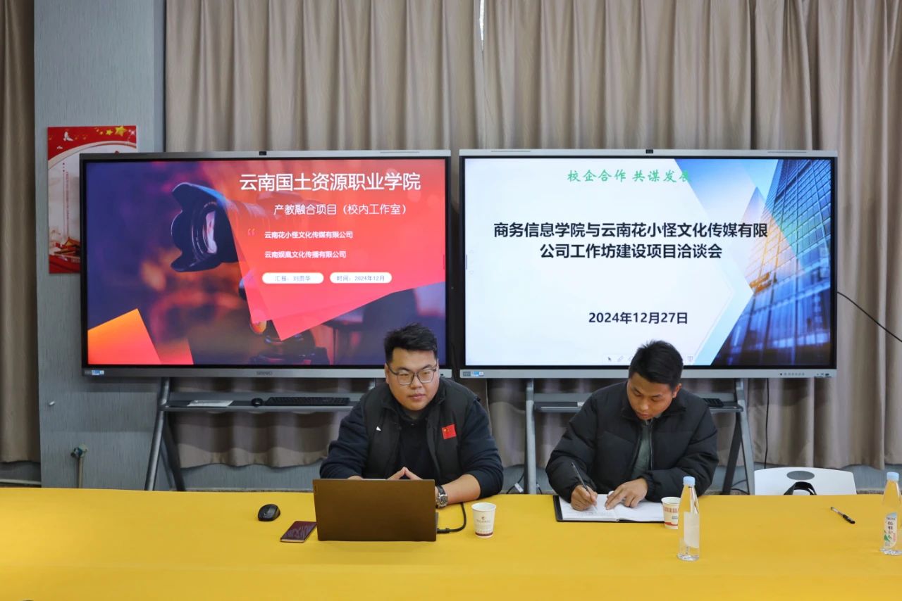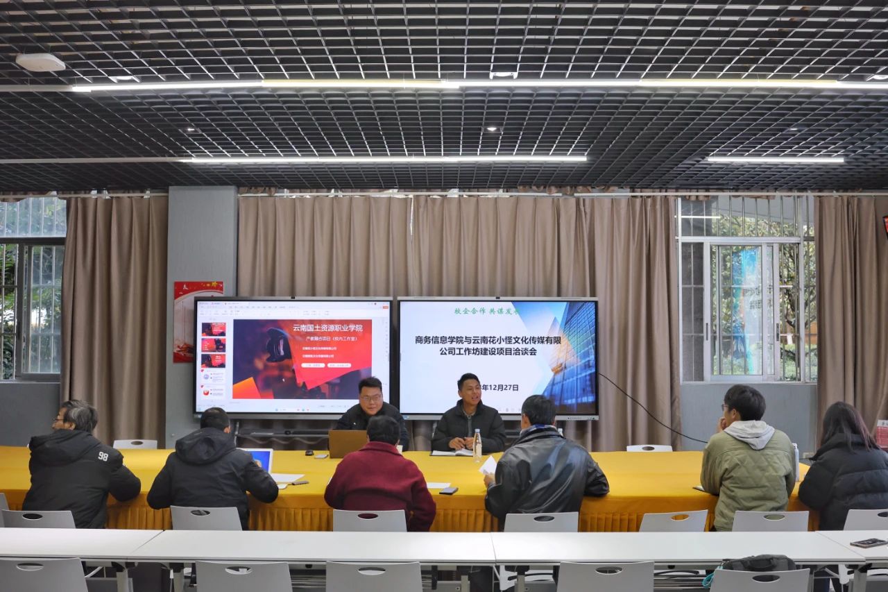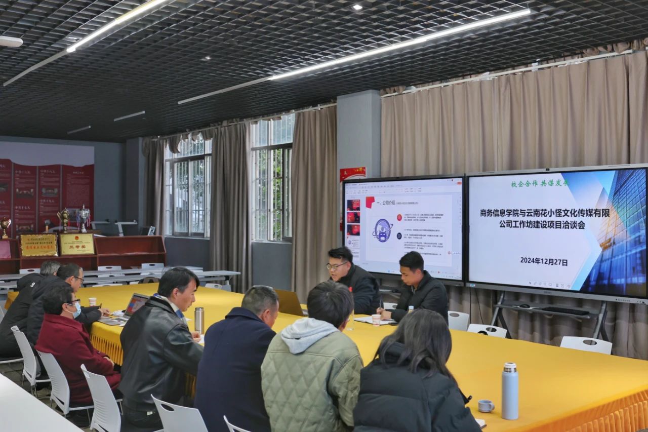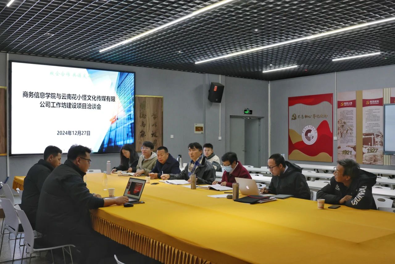 近日,太阳成tyc122cc与云南花小怪文化传媒有限公司在实验楼105室共同举办了一场工作坊建设项目洽谈会。此次会议旨在深化校企合作,共同探索人才培养、项目实践和技术创新的新路径。