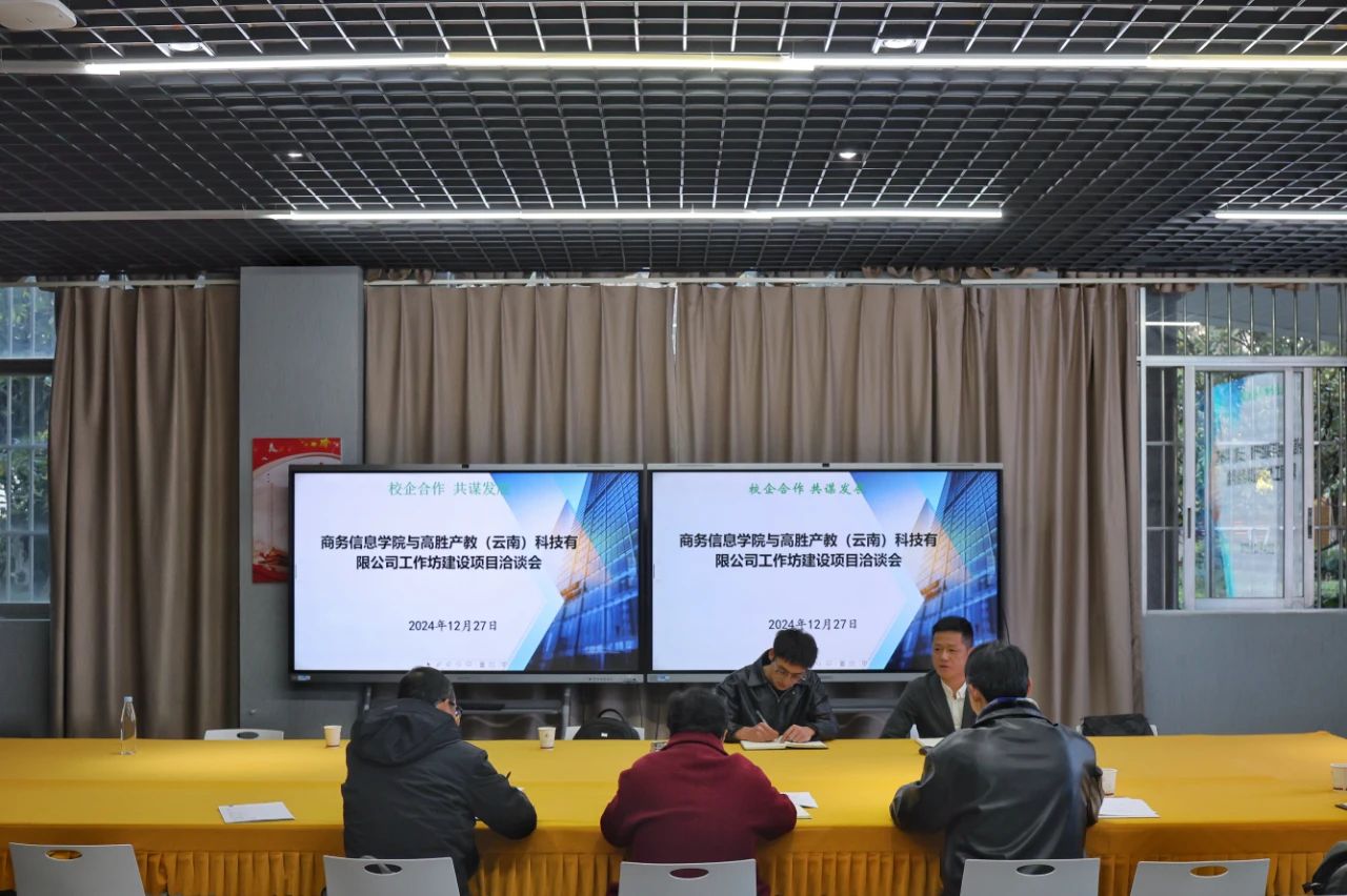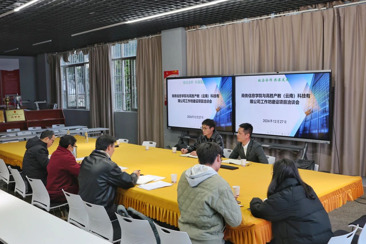12月27日,太阳成tyc122cc与高胜产教(云南)科技有限公司在实验楼105室举办了一场关于工作坊建设项目的洽谈会。双方代表齐聚一堂,共商合作事宜,为推进校企合作、产教融合奠定了坚实基础。